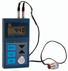 超声波测量厚仪根据超声波脉冲反射原理来进行厚度测量的,当探头发射的超声波脉冲通过被测物体到达材料分界面时,脉冲被反射回探头,通过精确测量超声波在材料中传播的时间来确定被测材料的厚度。时代超声波测量厚仪系列是集当代科技电子技术和测量技术于一体的、先进的无损检测仪器,采用微电脑对数据时行分析、处理、显示,采用高度优化的测量电路,具有测量精度高、范围宽、操作简便、工作稳定可靠等特点。凡能使超声波以一恒定速度在其内部传播的各种材料均可采用此原理测量,如金属类、塑料类、陶瓷类、玻璃类。可以对各种板材和加工零件作精确测量,广泛应用于石油、化工、冶金、造船、航空、航天等各个领域。本仪器显示分辨率为0.01,可测量比TT100更为精密的工件。