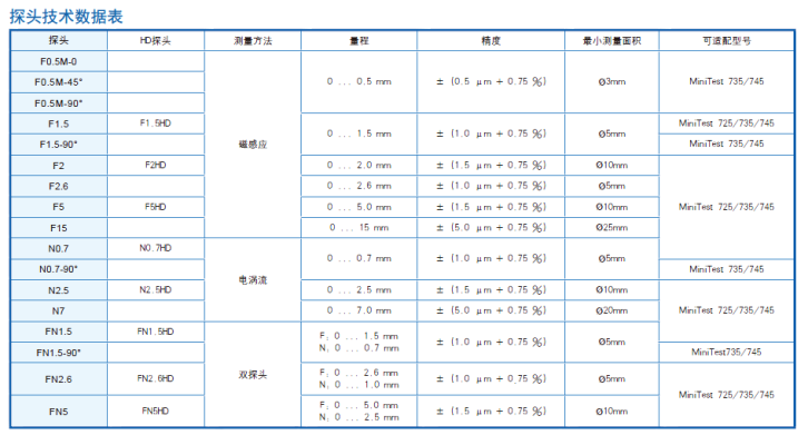 -FN探头自动识别F(铁磁性)或N(非磁性)基体,操作方便不易出错